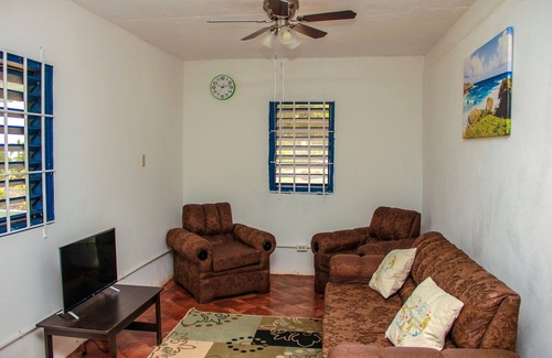 Beautiful hillside cottage overlooking the crystal blue waters of the Caribbean Sea and the town of Greenwood. Very spacious and cozy throughout. A ceiling fan and air conditioning will ensure you are always cool and relaxed. Spacious front porch with breathtaking views of the sunrise, coastal waters on Jamaica's north shore, and the town of Greenwood. Fully stocked and equipped kitchen, with open plan living area. Outside, there is almost an acre of space to explore, with lots of fruit trees and plants. There are also spaces for relaxing and taking in the view. This is truly your home away from home.