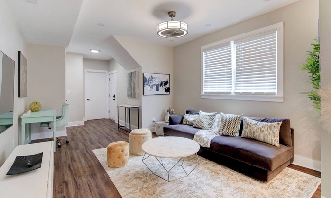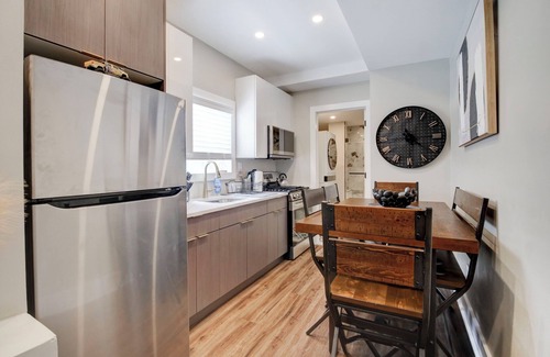 Newly renovated apartment, smartly decorated with more than enough space for 2 guests. Relax in the living room while watching Netflix on a 55 inch flat screen. Or catch some z's in the bedroom on a quality queen size Nectar memory foam mattress. There is a desk and chair if you need to work and washer and dryer for laundry.