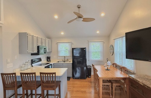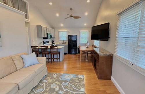 Inside, the cottage features an open-concept kitchen and living room, perfect for spending time together after a day by the ocean. Enjoy Wi-Fi, cable TV, and all the comforts of home in a clean, comfortable setting.