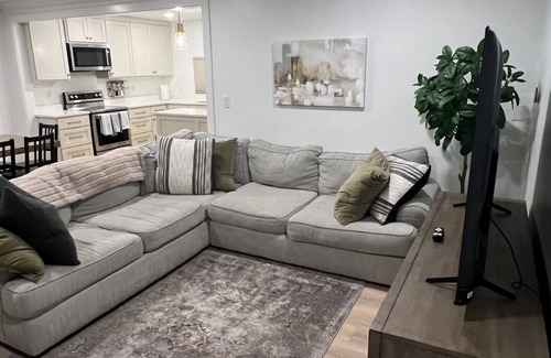 Get ready to relax in this 5-bedroom bungalow in Orem. This lovely property features 3 queen beds and 1 twin bunkbed and 2 triple twin bunkbeds (sleeps 14 total), perfect for a large group of guests. With amenities like WiFi, AC, and a washing machine and dryer, and full appliance package in kitchen, your stay will be comfortable and convenient. The 2 bathrooms are equipped with showers and hair dryers for your convenience. With a large backyard and patio with grill, eating outside is a great option! Conventiently located about 10 minutes to BYU or UVU. Fall in love with Orem and enjoy the magic it has to offer.