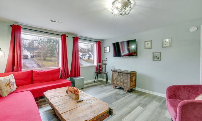 Enjoy a unique stay in Kingsport, Tennessee, at this juicy apple-themed apartment! This 2-bedroom, 1-bathroom vacation rental is located conveniently near local shops and businesses, making it easy for you to make the most of your time in the area. Explore the city by sampling local ciders on-site, cruising the Kingsport Greenbelt Trail, or visiting Warriors' Path State Park with loved ones. End your day with some live music just steps from your front door or a cozy movie night by the Smart TV.