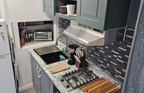Private entrance, King size bed, private bathroom, Full size fridge, washer & dryer, Full size microwave! Gas stove.