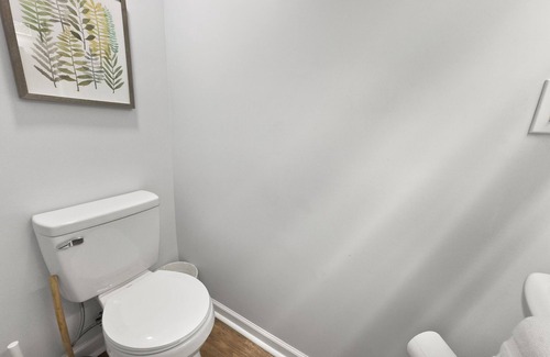 - BATHROOM 2 (half): Toilet and vanity only.
