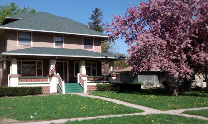 This grand hundred-year-old Craftsman style home is located in the small town of Kasson which is a close drive to Rochester and the Mayo Clinic system. This is not an entire home, but a fully furnished bedroom with a comfortable, queen-sized bed and a shared bathroom with a walk-in shower. Also available are a shared dining room, kitchen and front porch. Kasson offers a safe and peaceful, small town atmosphere for overnight stays, short stays or discounted long-term lodging. If this room is booked, we have two other rooms for rent listed under names Private Room in Historical Home Near Mayo and Cozy Room in Historical Home Near Mayo.