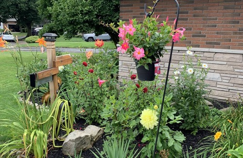 We reside in the downstairs suite, which has a separate entrance, and we have a cat. Guests can park two cars on the left side of driveway.
