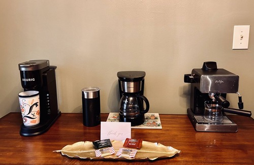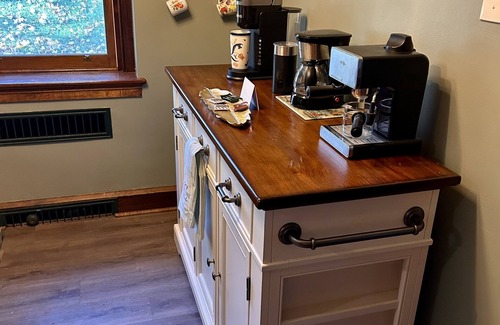 The house is not modern but some modern conveniences, including stainless steel appliances and a gas fireplace, granite countertops, a fully stocked kitchen and a coffee bar are provided.