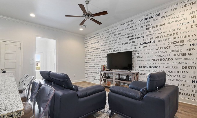 💜💛 Community Pool- Everything You Need Near LSU By Poree Homes is located in Highlands - Perkins. 💜💛 Community Pool- Everything You Need Near LSU By Poree Homes provides accommodation, featuring Pet Friendly, Pool, Bedding/Linens, among other amenities. This House features Pet Friendly, Pool, Bedding/Linens, to make your stay a comfortable one.