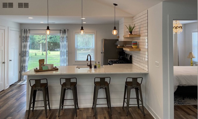 Cozy, fully renovated, cottage set back on a double lot on a hill in quaint Williams Bay. 1940's original cottage was rebuilt from ground up and finished July 2021. This cottage is fully functioning for everyday living and house is brand new with all new appliances! Sleeps 6 adults comfortably, with additional queen pullout couch and futon in living room. Located in the heart of Williams Bay, you can walk to the beach and downtown in 10 min (or a 2 minute drive). You are located 6 miles from downtown Lake Geneva, 6 miles from Elkhorn and 4 miles from Fontana. Williams Bay and surrounding towns have events, fairs and festivals all year round, not to mention the opportunity for outdoor activities that come with the beauty of the area!