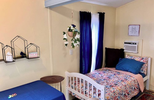 The Concho Cabin offers the best value for miles around! It has a kitchen, comfortable beds, and hot shower. The cabin is located inside Eagle's Nest Village RV Park in Goldthwaite. It is fully furnished and ready for your stay. Guests have access to all of the park's amenities, including laundry facilities, free WiFi, fishing pond, a community room with games, and a dog park. The property manager lives on-site for peace of mind. To reserve an RV site, visit eaglesnestvillage.com