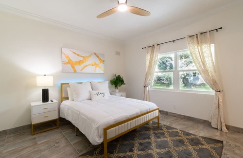 This space is beautifully decorated with a modern beachy feel, providing all the comforts of home. The fully stocked kitchen offers stainless steel appliances and everything you need to cook a delicious meal. Relax in the comfortable living room while watching your favorite shows on the large flat screen TV or snuggle up with a blanket on the couch. Each bedroom features comfortable beds with luxury linens, perfect for a good night's sleep. The master bedroom offers a private view of the back porch overlooking the grassy courtyard. Conveniently located within walking distance to many restaurants, shops, and entertainment options. Take a stroll down the famous Cocoa Beach Pier, or try your luck at the nearby casino cruise. With endless activities at your fingertips, this is the perfect vacation destination for families, couples, or friends looking for a beach getaway.