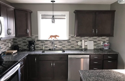 • Kitchen has stainless steel appliances, granite countertops, Keurig and traditional coffee maker and a breakfast bar that seats 6.
