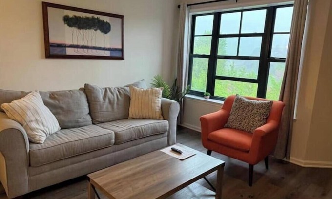 Freshly renovated open bedroom, living room, full bathroom, kitchenette condo unit at the Appalachian building right at the base of Mountain creek and next to the Mountain Ski Resort, Bike and Water Park.