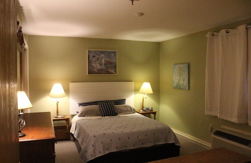 Tastefully decorated 1 bedroom, 1 bathroom condominium overlooking Paugus Bay from the balcony. You will enjoy a generous sized bedroom with a King size bed and single sofa-bed with a 32 inch flat screen TV. There is a fully equipped kitchen that is open to the dining room and living room, which has a 50 inch flat screen smart TV with Netflix. There is a slider to the balcony that overlooks Paugus Bay with beautiful sunsets. The condo sleeps 5 with a King bed, very comfortable pullout sofa (single) and a sectional couch that converts to sleeping. The facilities include a new outdoor pool (seasonal), a restaurant, and plaza with shops being renovated and spa hair and nail salon on lower level. Plenty of shopping in the area is within walking distance. There are many dining options in the area as well. Gunstock and Weirs beach are each about a 5-10 minute drive away. Weirs beach on Lake Winnipesaukee has plenty of public parking and a wonderful boardwalk and arcade for the whole family. Gunstock Mountain has great skiing and trails. Funspot, a gigantic arcade and bowling alley is about a 15 minute drive. There is so much to do there with neighboring Meredith's Mill Falls and many lakes to choose from. Towels and blankets are available. We are located a minute walk to the Margate. Bike week rentals must be the complete week.