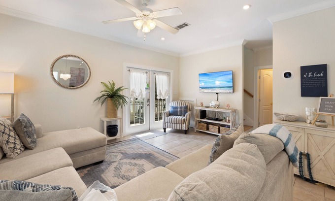 Captain's Chair 18A is conveniently located only steps from the beautiful Lagoon style pool at The Purple Parrot. Park right in front of your own Villa with a screened-in front porch to enjoy your morning coffee or an evening cocktail. Updated August of 2020 this Gulf Coast getaway features: All new living room furniture (New Pull Out Sofa Sleeper), New large screen TV in the living room, fulling equipped kitchen (includes a Keurig and Regular Coffee pot), and Breakfast Bar. New decorations throughout the cottage. There are books, movies, and games should the weather not be sunshine. There is a half bath downstairs, 2 large bedrooms upstairs with full baths. The master bedroom has a wall-mounted TV and a wonderful balcony has lounge chairs to relax after a great day of enjoying the beach or resort pool. The second bedroom features two twin beds a TV and a small private balcony. The Unit also has a crib for our smaller Guest. The Purple Parrot is located on the Barrier Island of Perdido Key. The Resort is close to amenities including: Golf, World Class Fishing, Restaurant, Marinas, and miles of beachcombing. Local favorite restaurants like The Jelly Fish, Islander, and Oyster Bar. Johnson Beach National Seashore is ¼ mile from the Purple Parrot and plenty of Public Beach Access is close by as well.