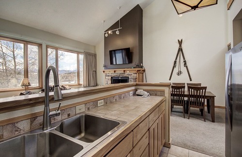 This spacious 2 bedroom + loft townhome is right by Keystone Lake, on the free Keystone shuttle route, and has fantastic amenities that make staying here a treat! A short walk from the outdoor parking lot and you will arrive at the front door of 1733 Lenawee. There is a small foyer/mudroom which has hooks for coats and keys before you walk up the flights of stairs to the main living area. The large kitchen is fully stocked with everything you will need to cook your favorite meals and has stainless steel appliances. There is seating for up to six people at the dining table, a smaller table for two, and a breakfast bar allowing for up to four people. Enjoy a relaxing evening in front of the wood-burning fireplace and watch a movie on the flat-screen TV. Open the blinds to the floor-to-ceiling windows and enjoy an abundance of Colorado sunshine right in your living room during your downtime at the condo. The two bedrooms are on the first level of the home. The spacious primary bedroom features a king-sized bed and en-suite bathroom with a double vanity sink and bathtub/shower combination. The second bedroom features two twin beds and an attached bathroom with a bathtub/shower combination. Both bedrooms feature flat-screen TVs. Up the third flight of stairs is the well-equipped loft bedroom. This loft features a twin over double bunk bed, a dresser for storage, and a bathroom which features a single vanity. There is also a queen sleeper sofa in the living room to accommodate additional guests.