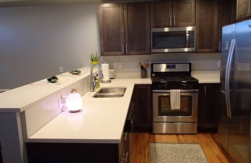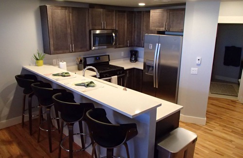2 Upper Level master Suites, Private Deck off of living area with mountain views, Serta Perfect Sleep mattresses and luxury bamboo sheets. Brand new appliances w/ gas stove. Fully equipped kitchen with everything you need to prepare your meals. Covered, off street parking.