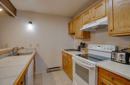 Stay close to the base area and enjoy the spacious deck at Racquet Club #321. This two-bedroom, two-bath pet-friendly condo sleeps six. It's located two blocks from the Chile Express chairlift and close to the Bear shuttle stop.