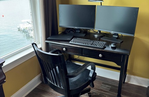 Our little lake place is a condo so it has that condo feel. There are 3 bedrooms (2 Queen beds and a bunk room with a full bed on bottom and a twin on top. There are 2 bathrooms and a laundry room. The kitchen is pretty well stocked with everything you would need to cook with. There is a bar to sit and eat or you may want to enjoy the outside patio with table and chairs that have a view. The condo offers high speed internet and a workspace with a usbc docking station with dual monitors, keyboard and mouse. The complex has two nice pools. (one is more of a lap pool and the other more of a lounging playing pool. There are restrooms located near the pool. There is a grilling section by the pools, if you would like to show off your grilling skills. Also, for the kiddos there is a playground area. We have a boat slip on the property if you would like to bring a boat or rent one from someone local. The slip is labeled with my condo number Q3. There is a game room located on the third floor of the entrance. There are 2 elevators on the premises. One elevator is near the entrance and the other is closer to our unit. When you arrive and would like to unload you may pull your vehicle close to the condo and unload. You must park up close to the garages. The lower parking lot is for the owners. My condo is in the section facing Lake Martin and the 280 bridge. One awesome thing about renting here is that you are only 2 minutes from highway 280. We hope you enjoy your stay and give us a good rating. If you need anything please let us know and we will try our best to assist you.