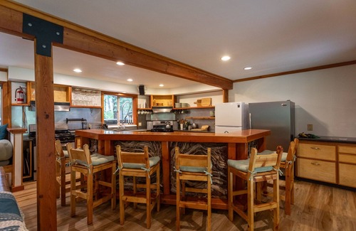 Upstairs in the Main Lodge are the King size suites - a couple’s intimate getaway dream come true. Each suite features a king size bed, a two person, 6 ft soaker tub overlooking the forest with ocean glimpses, flat screen TV, propane fireplace, mini kitchen with granite countertops and your own private deck. All bedding, towels, and robes will be supplied.