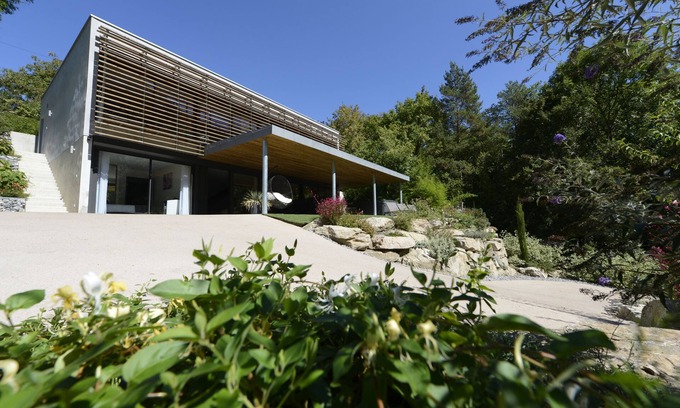 Sensitive to environmental issues, the cottage was built to new BBC standards. The architects designed the layout of the house, its insulation and the exhibition of living rooms with this in mind. A wooden strip sunshade protects the glass facade of the first floor while preserving the view and the flat roof facilitates the integration of the house into its environment. The rooms all have electric shutters allowing their concealment and their insulation if necessary. Inside, double insulation, silent floors and soundproof doors keep everyone calm and private.
