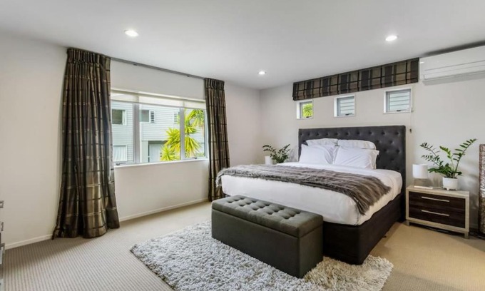 A 19-minute walk from Browns Bay Beach in Auckland, Contemporary Browns Bay Haven with Fabulous Patio features accommodations with access to a hot tub. This vacation home provides accommodations with a patio. There's an outdoor fireplace and guests can use free Wifi and free private parking. The air-conditioned vacation home consists of 3 bedrooms, a living room, a fully equipped kitchen with a dishwasher and a coffee machine, and 2 bathrooms with a bath and a hair dryer. Towels and bed linen are provided in the vacation home. The property has an outdoor dining area. Guests can relax in the garden at the property. Auckland Harbour Bridge is 10 miles from the vacation home, while North Head Historic Reserve is 12 miles from the property. Auckland Airport is 24 miles away, and the property offers a paid airport shuttle service.
