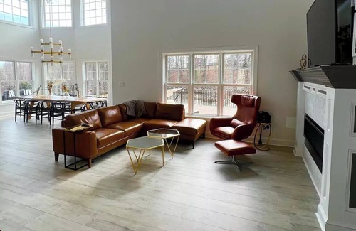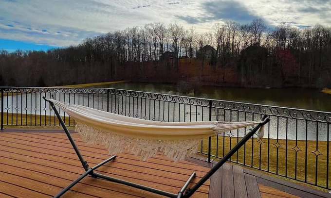 Bring the whole family to unwind at this stunning, modern home built for luxury and nature lovers alike. Generous space for 10 (or more) to play, relax, and sleep. 5 BR, 6 full BA, 2 kitchens, and a private gym! Have morning coffee on the beautiful deck overlooking your own pond, go for an afternoon stroll, and stargaze at night. Tucked away in Forest, VA. Enjoy the benefits of peaceful seclusion without being too far from dining and activities!