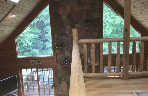 Are you looking for peace and quiet? Read a book on the screen porch or make s'mores at the outdoor firepit. Don't forget about the spectacular fall foliage in Vermont! This 3-bedroom modern log home with a loft was built in the summer of 2002. Floor-to-ceiling stone fireplace in the great room. Fully equipped kitchen with granite counters, stainless steel appliances, and maple cabinets. The master suite features a private, newly renovated deck, a queen-sized bed, a master bath, a dual-sink vanity with quartz countertops, and a jetted whirlpool tub. One downstairs bedroom has a queen-size bed, and the other is a children's bedroom with 2 full/twin bunk beds. Roku with DIRECTV streaming in the Master bedroom, which has a 42" flat screen. Roku with DIRECTV streaming in the living room, with a 65" flat screen. The basement is full of fun and games, including air hockey, ping pong, foosball, arcade bubble hockey, two basketball games, a video arcade with 60 games, and more! Great outdoor fire pit perfect for roasting marshmallows. VERY CLEAN AND WELL-MAINTAINED BY OWNER. LINENS INCLUDED. SORRY...NO PETS ALLOWED.