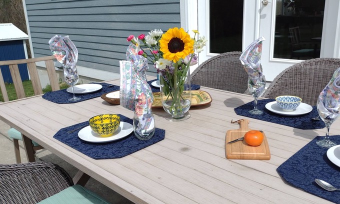 State-of-the-art kitchen overlooking an apiary, garden and patio with seating for 6. A washer, dryer, and fully stocked kitchen help make your stay comfortable and enjoyable.