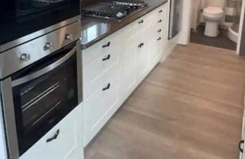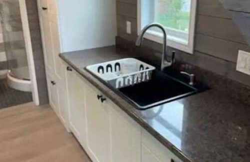 This Tiny Home has a queen size bed in the loft and full size sofa couch on the main floor. There is a TV in main living area with HDMI cable for laptop/computer. There is a microwave/convection oven, cooktop, and refrigerator. A small dining table with two chairs. The home is heated and cooled with a mini-split.