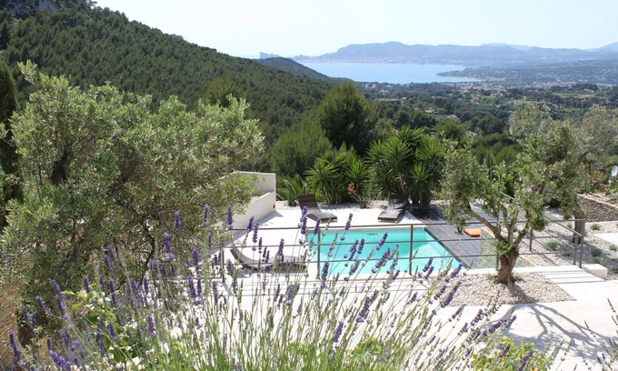 Contemporary villa, fully air-conditioned, with a stunning panoramic sea view is located in La Cadiere-d'Azur. Contemporary villa, fully air-conditioned, with a stunning panoramic sea view provides accommodation, featuring Ocean View, Wellness Facilities, Fireplace/Heating, among other amenities. This Villa features Ocean View, Wellness Facilities, Fireplace/Heating, to make your stay a comfortable one.