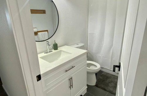 This 2-bedroom, 1-bath home features two queen beds, a fully equipped kitchen, and a smart TV. Enjoy the back deck for outdoor relaxation, and take advantage of the garage and in-home washer and dryer during your stay.