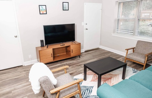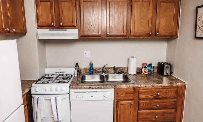 As you settle into this 2-bedroom, 1-bathroom rental, you'll find a sitting area, air conditioning, and a desk. Connect to the free WiFi, or get cozy in front of the TV. Prepare a home-cooked meal in the kitchen, complete with an oven, a stovetop, and a dishwasher, as well as a coffee maker. And because there's a washer/dryer, you can go a bit lighter on your packing. Other amenities include bed sheets, heating, a desk chair, and a dining table.
