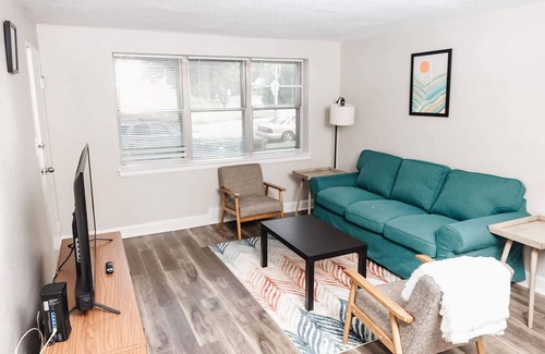 Located in St. Louis, this welcoming apartment lets you experience it all. Jump into your car and make short work of the 13-minute drive to St. Louis Union Station or the 7-minute drive to Forest Park (and enjoy the property's convenient onsite parking in the meantime).