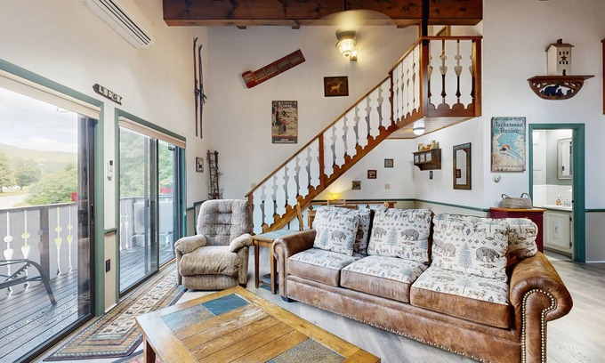 Featuring soaring, vaulted ceilings, a wood-burning fireplace, and a comfortable living room sitting area, this spacious home is only a half-mile from Story Land, less than five miles north of Attitash Mountain Resort, and right across from Linderhof golf course. Ideal for your family's next ski vacation, this lovely home features a large flatscreen TV in the living room for those afternoon games with friends. Savor your first cup of coffee on the private deck while streaming some delightful music to your device via the free WiFi. The full kitchen is waiting with granite countertops and fun gadgets to play with when you prepare tonight's home-cooked meal. As a guest, you'll have access to the Linderhof pool and country club (pool and tennis court are accessible to guests for a nominal fee).