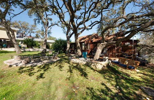 This charming cabin sits on 3.5 acres in Oak Hill, and is conveniently situated near Hwy 71 and 290. Sharing the property are a nearby main house and two tiny houses nestled at the back. Embrace the tranquility of this retreat while enjoying easy access to major highways and neighboring attractions.