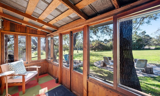 The cozy 200sf cabin features a kitchenette, compact full-bathroom, closet, and a delightful screened porch. Enjoy the peaceful surroundings beneath the shade of majestic Oak trees. Conveniently situated, it's a swift 20-minute drive to downtown, the airport, and a mere 5 minutes to the vibrant Hill Country Galleria for shopping and dining.