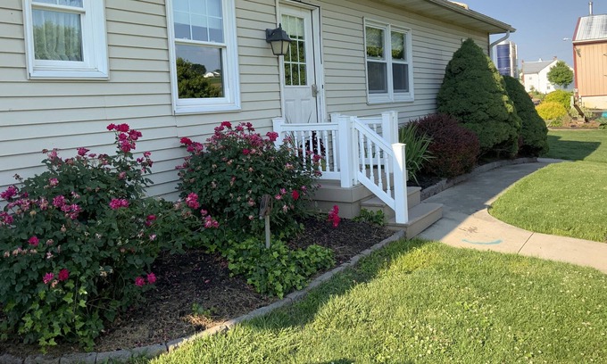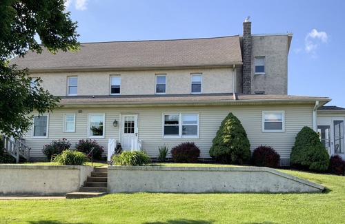 A cozy In law suite on a farm. Great views. Located 8 minutes from Pa turnpike interchange 298. You might see cattle, ponies, and horses grazing in the lush pastures a few hundred feet away or the farmer working the land in the nearby fields.
