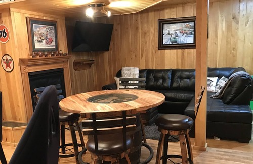 Renze’s Woodsedge is and updated 5 + bedroom home that is a Power Sports person’s dream. It boost a gear room for all your snowmobile/ATV gear and easy access to the trails while being close to all the adventures of the Munising area. After a long day out on the trails, settle into two areas with fireplaces, one a bar area, the other a cozy nook away from the fray. The home has an 8 person hot tub and a large sauna to ease away the days workout. It has an attached 2 car garage for convenient parking of your machines. Also, a large paved driveway for several vehicles or a guest pulling a large trailer. In the summer, a fire pit is provided for sitting around at the end of the day with a picnic table and gas grill. Happy trails.....
