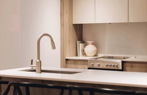 Modern apartment in historic Old Montreal with fully equipped kitchen, luxury bedding and decor.