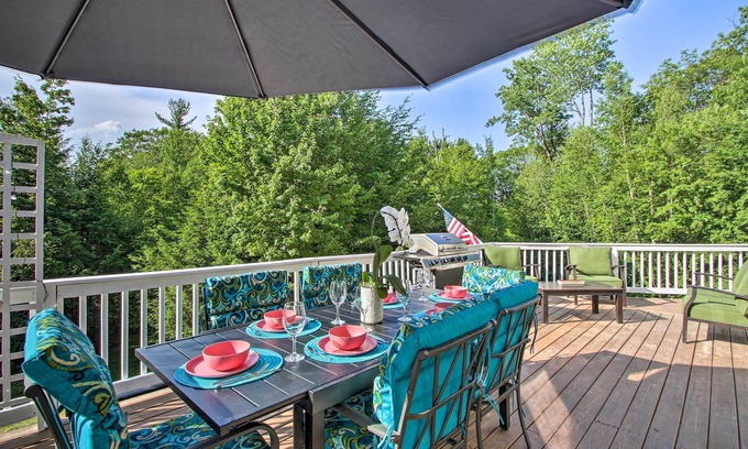 Embark on the ultimate White Mountains escape and stay at this 3-bedroom, 3-bath vacation rental! This home in Eidelweiss Village is dog-friendly and features a game room, furnished deck, and private yard. After lounging on the community beaches or skiing at Cranmore Mountain Resort, return to share quality time with loved ones and roast s'mores under the stars.