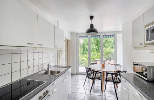This furnished apartment is located in Breite, the 4th district of Basel. This small neighborhood bordered by the Rhine to the north is set in the Grossbasel part of the city. The riverside portion of Breite has several high-end restaurants as well as a park. The neighborhood also features two large supermarkets. Another area highlight is the sprawling Schwarzpark, a beautiful urban greenspace that features herds of deer. It's easy to get around Breite and the rest of Basel by bus and tram.