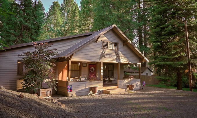 Welcoming Cool Creek Cottage is situated in the mountains of the Rogue River Siskiyou National Forest, along Oregon Highway 62 on the Rogue River, in the heart of Prospect Oregon, population 500. Located 45 miles from Medford, Oregon, and just 32 miles from, Crater Lake National Park South entrance, Prospect is the gateway to year-round natural beauty and recreational opportunities. This cottage is surrounded by Old Growth Cedar trees, large Doug Fir, Dog Woods, with lovely Cool Creek running property side and walking distance to scenic Rogue River trails with spectacular waterfalls.