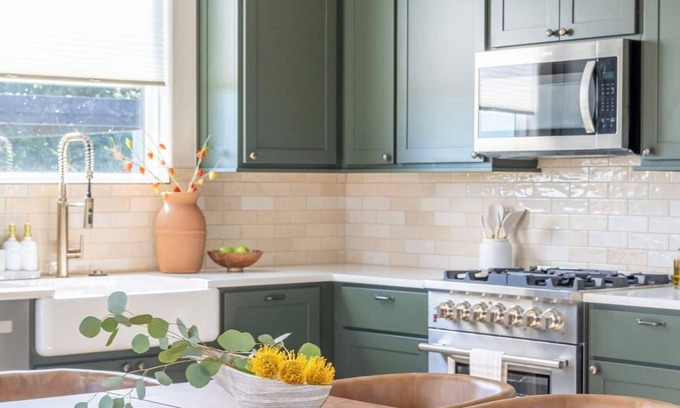 - In-unit washer and dryer with laundry detergent and dryer sheets provided