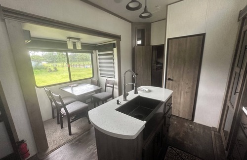 Stay comfortably in Milton at this delightful 1-bedroom recreational vehicle. The cozy space features a queen bed, 1.5 bathrooms with shower, AC, and heating. Enjoy a quaint and awesome stay in this unique accommodation on a working horse farm. Feel free to reach out to us during your stay - we're happy to suggest local spots to check out.