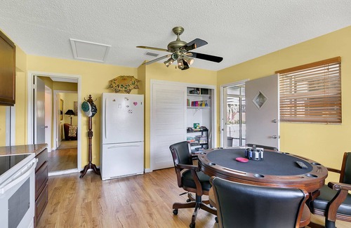Completely remodeled and furnished, this house has 2 fully stocked kitchens plus an 80lb ice-maker in the garage and a 3rd fridge for beverages poolside! The main kitchen opens onto a huge living room with fireplace and a 70 inch TV. A large island and open plan means that the cook never gets left out of the fun. The second kitchen is located at the back of the house, near the porch and pool. Perfect for preparing side dishes when grilling out or for late night snacks poolside.