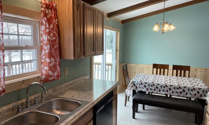 Newly renovated cottage perfect for a large family or for friends to share. Double Play Hilltop Cottage has beautiful wood accents in the lofted living area and throughout 1,100 square feet of modern living space. The Master BR is large with a Queen size bed and has a TV and an ensuite bathroom. Bedroom 2 has Queen and XL Twin beds. Bedroom 3 has a Queen size bed and TV. The kitchen is equipped with modern appliances including a dishwasher. A washing machine and dryer are in the alcove off the kitchen. The Cottage has central heating as well as window and wall air conditioning units for seasonal heating and cooling.