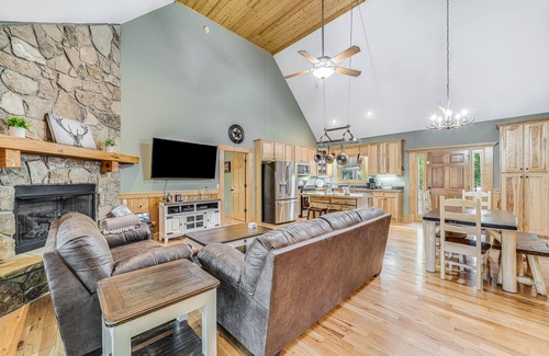 Part of the amenity-rich Coosawattee River Resort, this modern cabin is perfect for friends and family. Sip morning coffee on the picture-perfect front porch or curl up with a good book in the sunroom. Host a cookout on the patio then gather round the firepit as the stars come out!