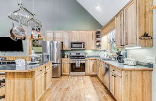 Vaulted ceilings soar in the spacious great room and plush primary suite. Whip up delicious dishes in the sparkling full kitchen, with stainless steel appliances and lots of handy extras. Cozy up by the gas fireplace for movie nights or board games with the whole group.
