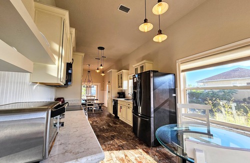 The well-appointed kitchen calls to culinary enthusiasts. Create delicious meals or beachside snacks and enjoy at the spacious dining table, breakfast nook, or outdoor table.