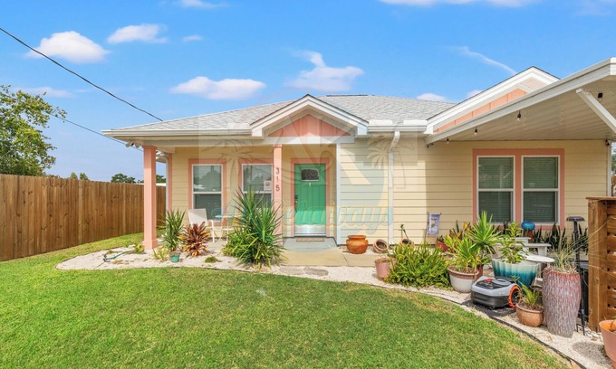 Make beach vacation memories at this family-friendly 2 bedroom, 2 bathroom single story beach cottage. Sleeps 6. No stairs, elevators or high rise condo crowds! Just a 10 minute walk, or just a few minutes with the provided bicycles lets you be close to the beach, but in a quiet family friendly neighborhood. Located approx 0.5 mile from the beach on the west end of PCB, in the golf cart friendly community of Laguna Beach. Located between Pier Park and 30A. Small pets UNDER 30 pounds welcome, with no additional pet fee. Beach chairs, umbrella, wagon, and toys are available for your use. We also provide 5 different sized bicycles and wagons for your use! Space available to park your boat and a hose available for fresh water rinse.